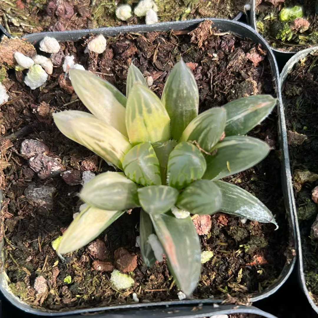 Min Hui Haworthia CreamStripe displays elongated translucent leaves accented with creamy white striping over fresh green tones. Its upright compact rosette and stable variegation make it ideal for small pots, export trays, and mixed succulent collections. Color contrast may shift slightly with seasonal light changes. For wholesale pricing and more plant varieties, please contact us directly.